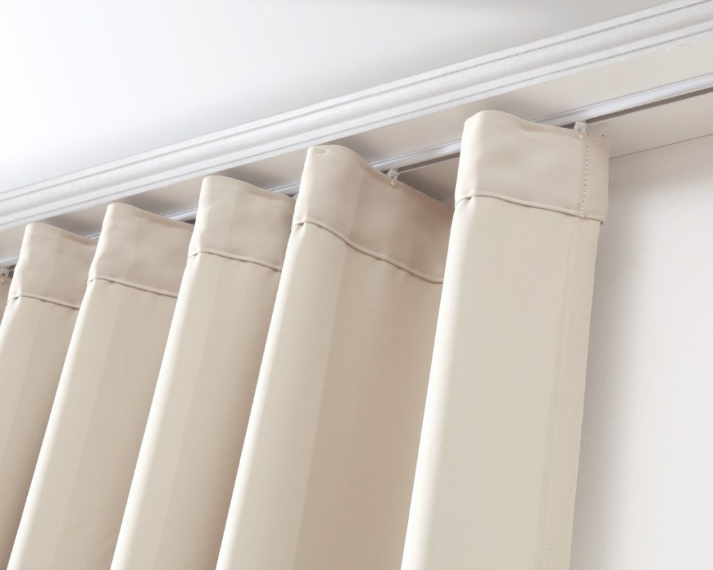 É importante, que na modalidade, com fita wave, a largura seja três vezes maior que o trilho. Por exemplo: se o varão ou trilho deslizante tem dois metros, é importante que a cortina tenha seis metros de largura. Já nas cortinas com pregas, é essencial utilizar o tamanho especificado no trilho, para que as pregas possam ficar esticadas.