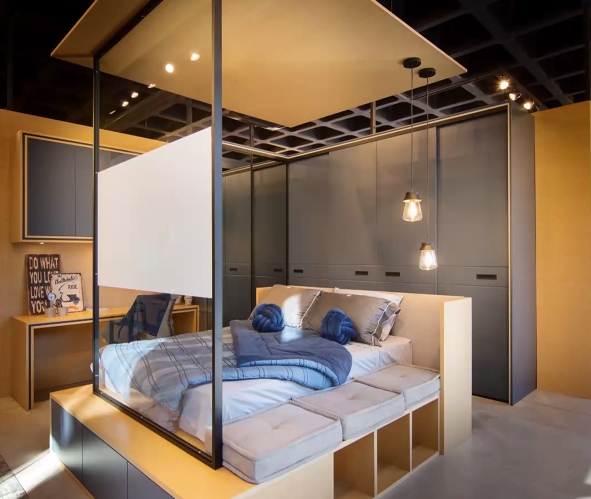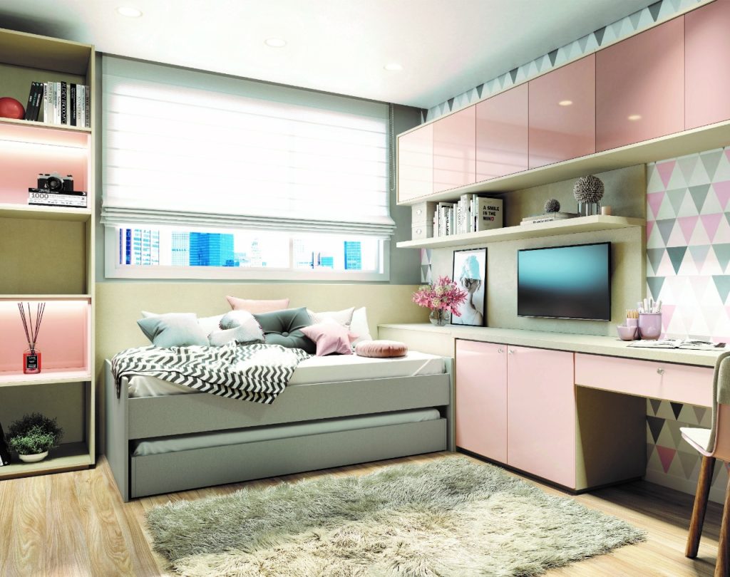 É assim que você abre uma porta, ou fecha um compartimento, e transforma seu quarto num escritório, por exemplo. A arquiteta explica que essa tendência vem sendo explorada até para ambientes maiores. “Temos projetos em que uma única bancada pode ser utilizada como apoio da cozinha, sala de jantar, living e, com uso de um painel móvel, criar um ambiente privativo para uso como home office. Uma sala de TV pode ser fechada com uma porta de correr e virar um dormitório extra. A porta de um armário pode comportar o painel de uma TV, em casos onde o dormitório é reduzido. Esse aproveitamento de espaço pode, até mesmo, fazer com que o mesmo televisor seja reversível tanto para a sala, quanto para o quarto, com o uso de um painel giratório. É uma forma de otimizar o espaço de forma inteligente sem abrir mão de nada”, afirma.