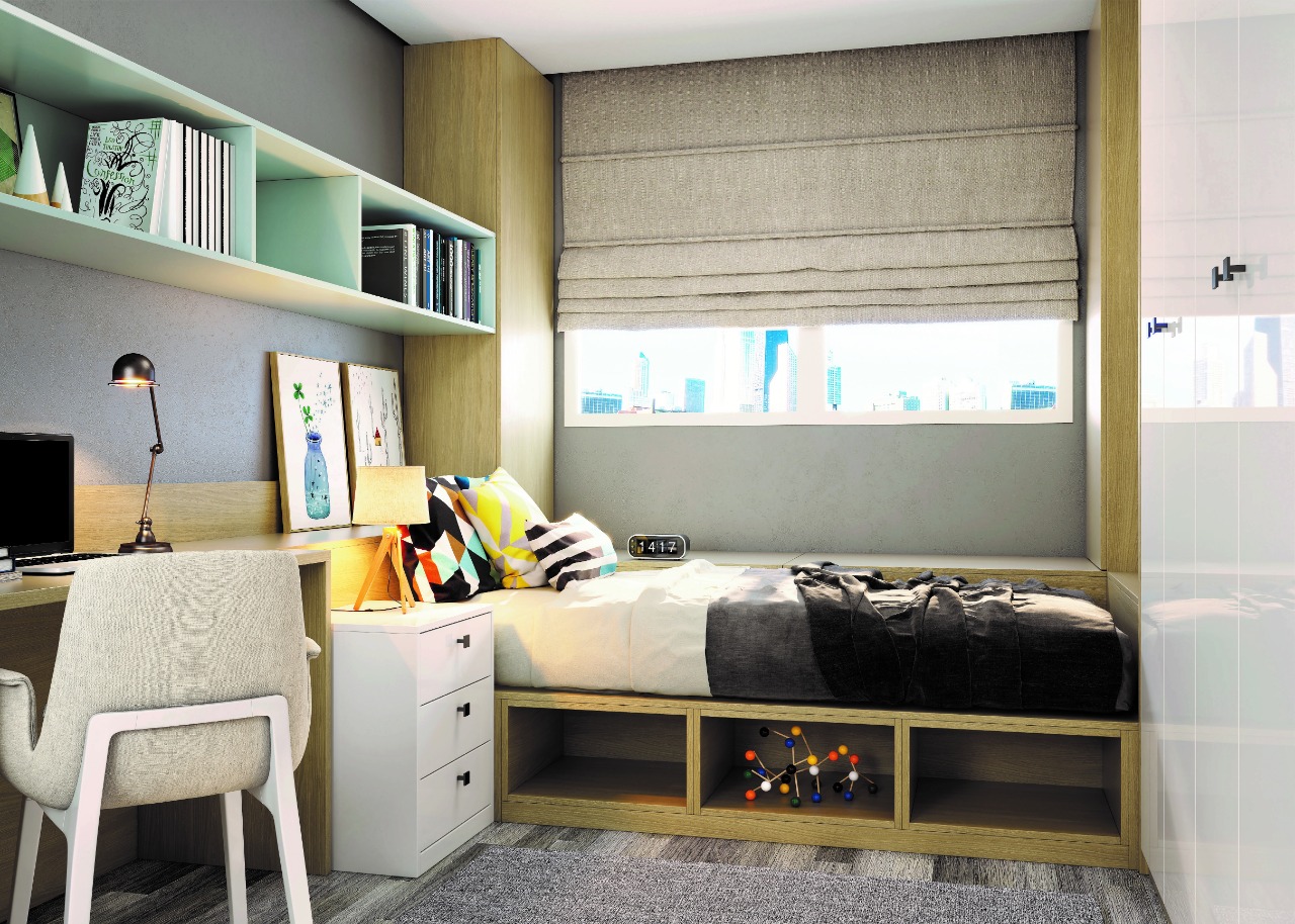 A arquiteta e urbanista da Criare Campinas, Rafaela Costa, explica que a marcenaria planejada é o coração dos interiores reduzidos. “Adequar armários, prateleiras, optar por móveis reversíveis e funcionais podem ser estratégias que permitam transformar um mesmo cômodo em dois ou três para que ele cumpra diversas funções”, diz.