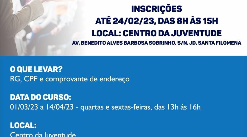 As aulas terão início no dia 1º de março e seguem até 14 de abril, sempre às quartas e sextas-feiras, das 13h às 16h, no próprio Centro da Juventude. Dentre os temas abordados, estão a preparação do currículo, como preencher formulários de solicitação de emprego/entrevista e técnicas de procura de vagas.