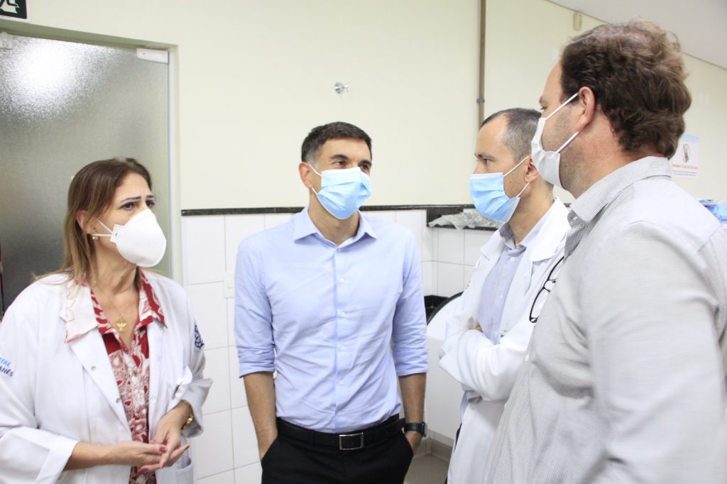O prefeito Thomás Capeletto de Oliveira visitou a unidade, acompanhado pelo secretário adjunto de Saúde, Lucas Zeponi DalAcqua, e pelo provedor do hospital, Emerson Netto.