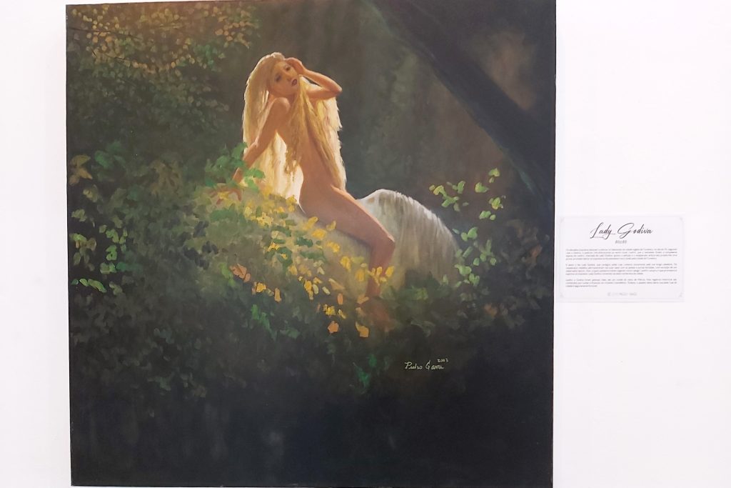 A maioria das 29 obras tem o tamanho de 30x40cm, além de outros maiores, com destaque para Lady Godiva, de 80×80. Remete a dama que se tornou heroína da cidade inglesa de Coventry ao cavalgar pela rua coberta unicamente pela longa cabeleira. Além desse, o menor quadro da nova exposição chama-se Na Cocanha V, de 27x35cm.