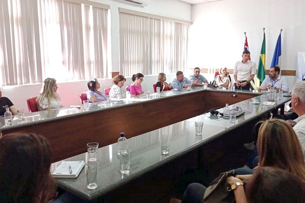 Cerca de 20 representantes de escolas particulares e estaduais foram recebidos pelo prefeito Thomás Capeletto de Oliveira nesta tarde para tratar da adesão ao sistema de segurança digital contra emergências. Foto: Mari Giro e Renato Jr/PMI