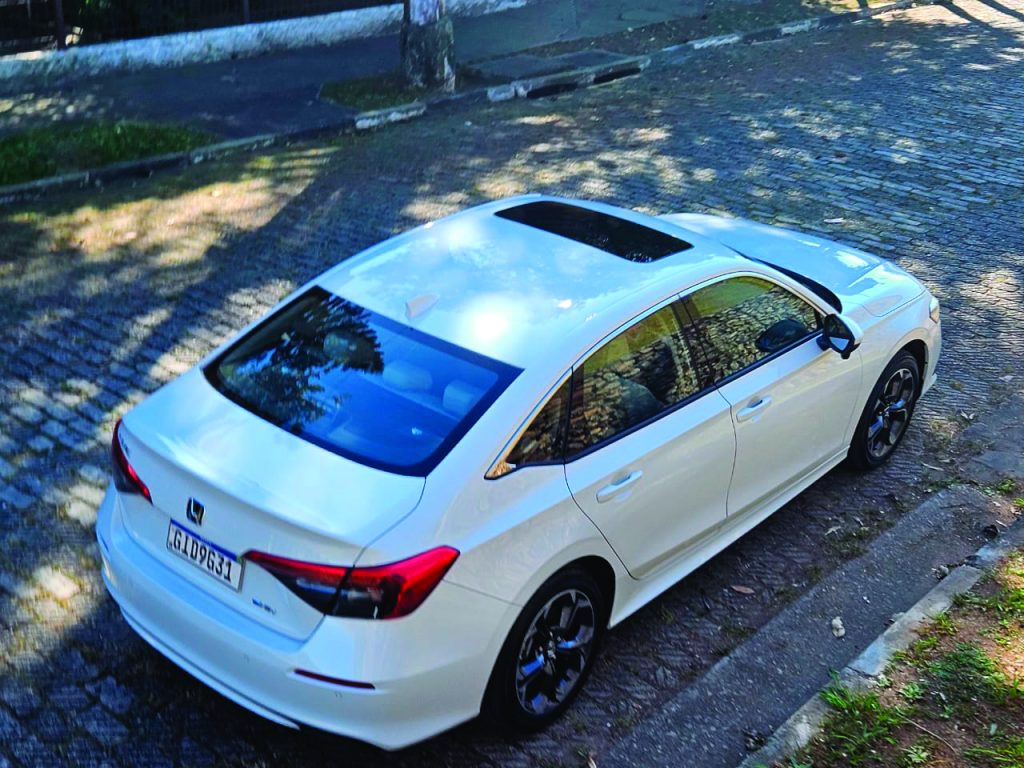 De cara, uma observação importante. Trafegando no congestionado trânsito de São Paulo, deu para perceber que a autonomia apresentada no computador de bordo só aumentava. Isso porque no anda e para, em baixa velocidade, o Civic híbrido praticamente só utiliza seus dois motores elétricos de alta eficiência. O propulsor 2.0 a combustão fica de stand-by. Ou seja, nada de gastar gasolina. E zero de preocupação em relação a ter que recarregar baterias, já que o sistema se autoalimenta. Na cidade, os elétricos são recarregados pelo motor a combustão.