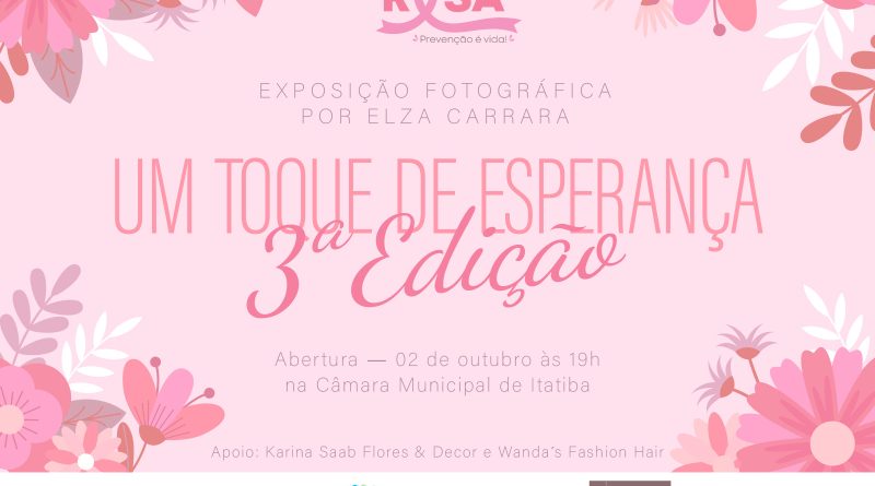 Será aberta na Câmara Municipal de Itatiba, nesta segunda-feira (2), às 19h, a exposição “Um Toque de Esperança”. Em sua terceira edição, a mostra traz dez mulheres sob as lentes da fotógrafa Elza Carrara. As modelos venceram a luta contra o câncer de mama.