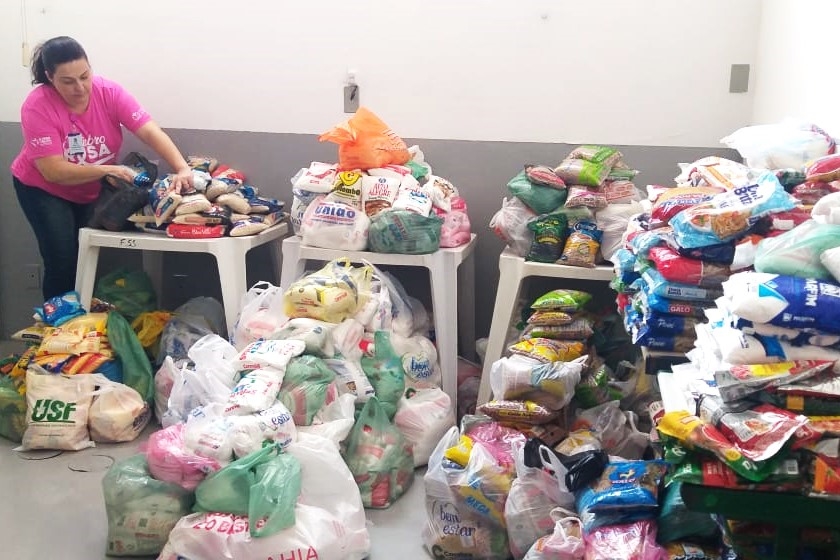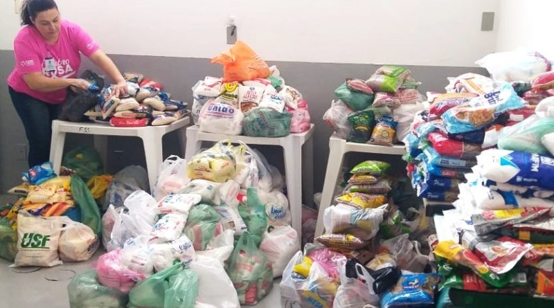 Mais de 1 tonelada de alimentos é arrecadada pelo FSS com troca de camisetas do Outubro Rosa