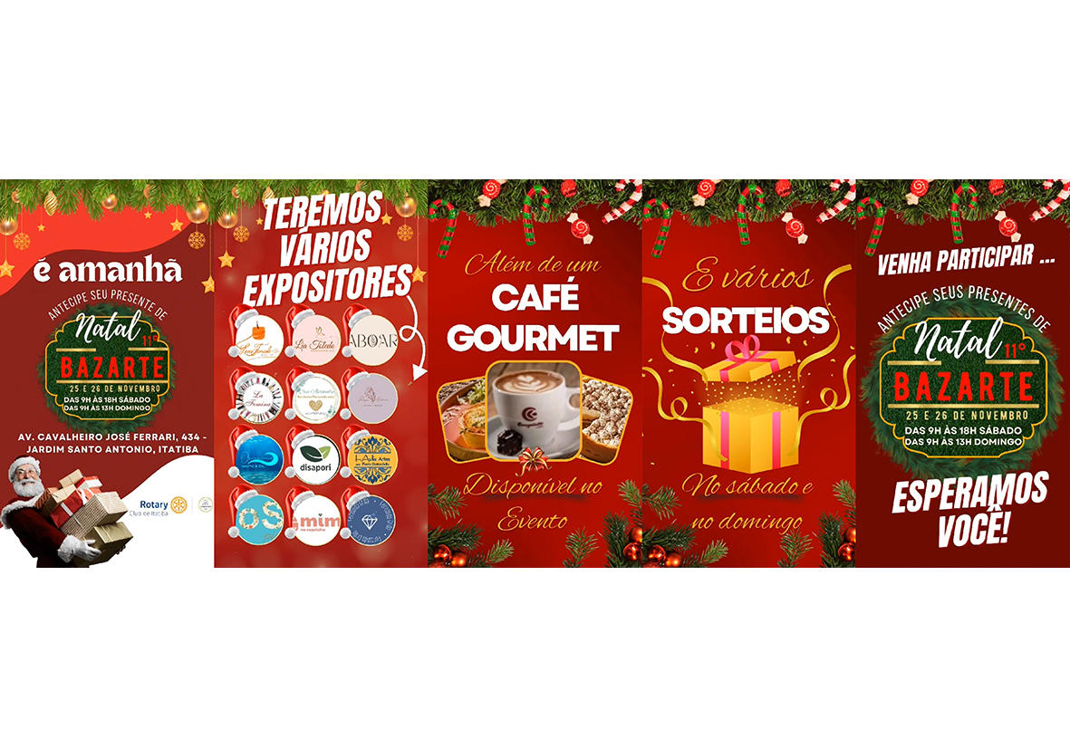 Cidade Convite da Associação das Senhoras dos Rotarianos de Itatiba (ASRI) novembro 24, 2023 Ricardo Leocadio 11° BAZARTE25/11 (sábado, das 09h as 18h)26/11 (domingo, das 09 as 13h)Local: Sede do Rotary Club de Itatiba (Av. Cavalheiro José Ferrari, 434 – Jardim Santo Antônio) Vamos lá participar?