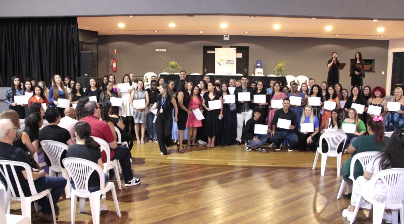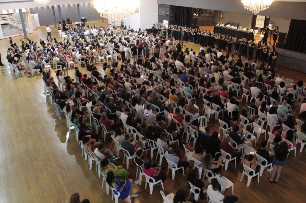 “Nesta noite, foram emitidos mais de 900 certificados e, só neste ano, mais de 2,4 mil certificados. Agradeço muito professores voluntários e parceiros; sem eles, nada disso seria possível. E, em especial, a nossa Equipe do Fundo Social, uma equipe acolhedora”, disse a presidente do FSS, a primeira-dama Barbara Zaratini Capeletto de Oliveira, parabenizando os formandos.