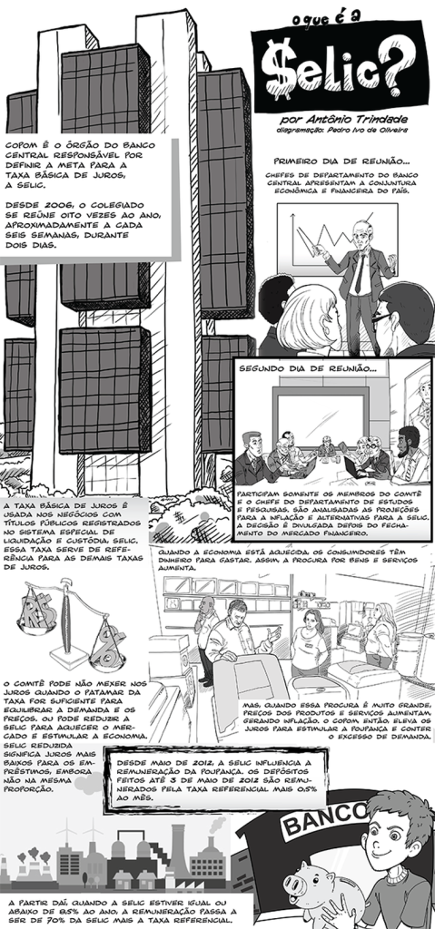 A taxa básica de juros é usada nas negociações de títulos públicos no Sistema Especial de Liquidação e Custódia (Selic) e serve de referência para as demais taxas de juros da economia. Ao reajustá-la para cima, o Banco Central segura o excesso de demanda que pressiona os preços, porque juros mais altos encarecem o crédito e estimulam a poupança.