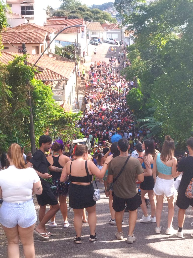 Terça-feira, 13/02: Após esquenta com a Banda Namoradeira no palco principal, o Bloco Sputinik atraiu uma multidão para a rua Tobias Franco, no ‘lançamento do foguete’, que a cada ano atrai mais gente aderindo à proposta de subir de costas a ladeira íngreme.