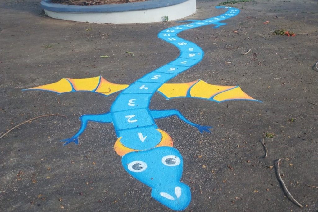 Santa Cruz, revitalizada há meses, agora tem no chão pintura lúdica que convida ao brincar