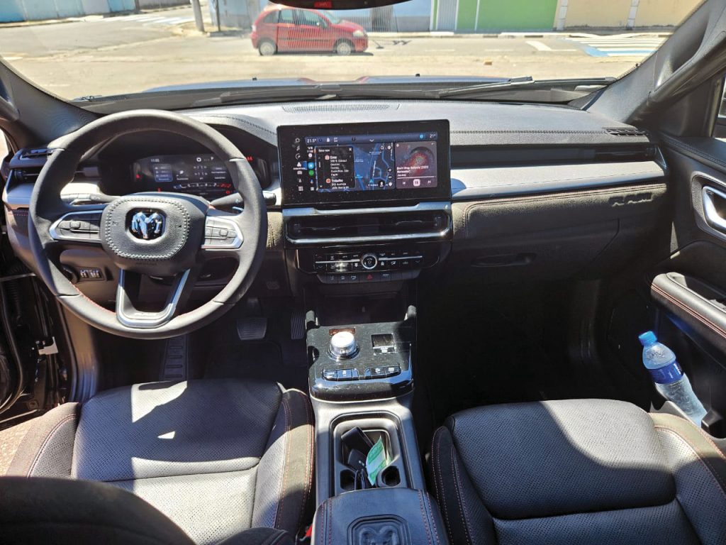 Para finalizar, o pacote de equipamentos embarcados justifica os R$ 270 mil cobrados por esta RAM. Conta com 7 airbags, controles de tração estabilidade, assistente de partida em rampa, controle de descida, painel de instrumentos digital de 10,3” com grafismos exclusivos, multimídia com tela de 12,3”, Android Auto e Apple Car Play sem fios, carregador de celular por indução e chave presencial com partida por botão e remota na chave.