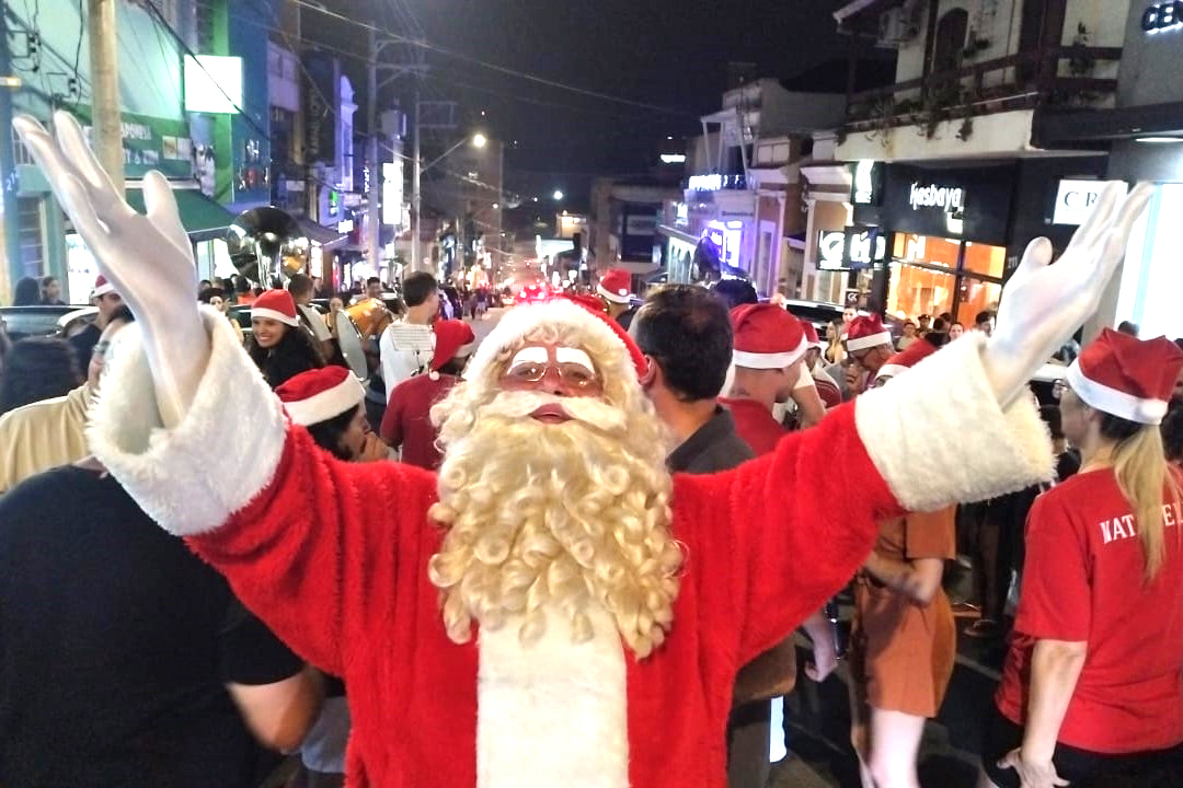 Em seguida, começou a animada caminhada do Papai Noel Carlão Tafarello, que até regeu os músicos da centenária Corporação Musical Santa Cecília pela Rua Francisco Glicério, encerrando na escadaria do Paço Histórico com muita música, sob a ‘regência” do Papai Noel.