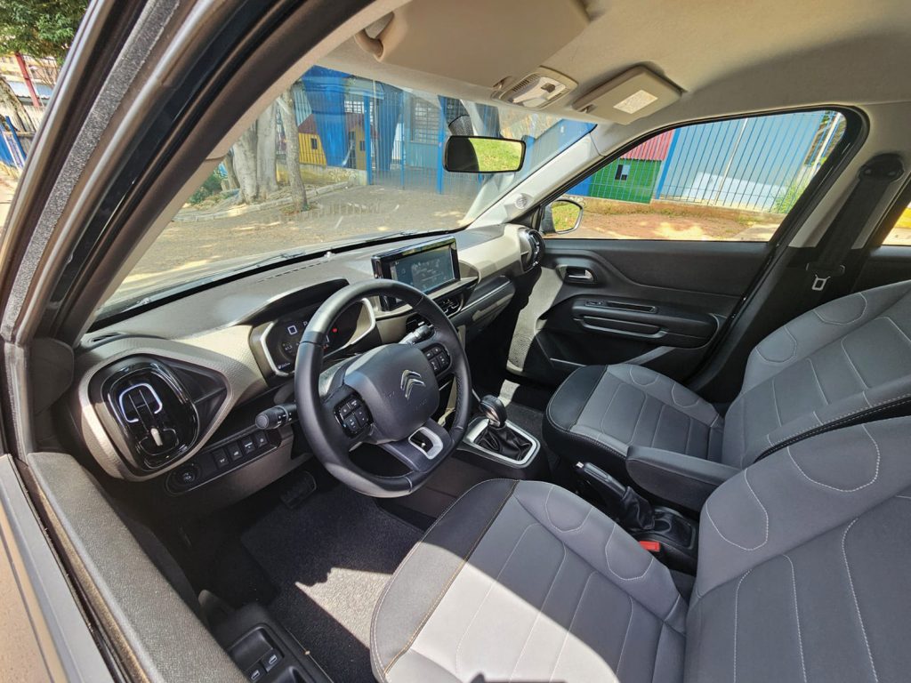 O painel possui uma ampla faixa bicolor no tom Solar Bronze, que integra visualmente o painel digital colorido de 7” com a já reconhecida central multimídia Citroën Connect Touchscreen de 10,25 polegadas, compatível com Android Auto e Apple CarPlay, além de seis alto-falantes. O ar-condicionado digital automático permite a escolha da temperatura ideal com o toque de um botão.