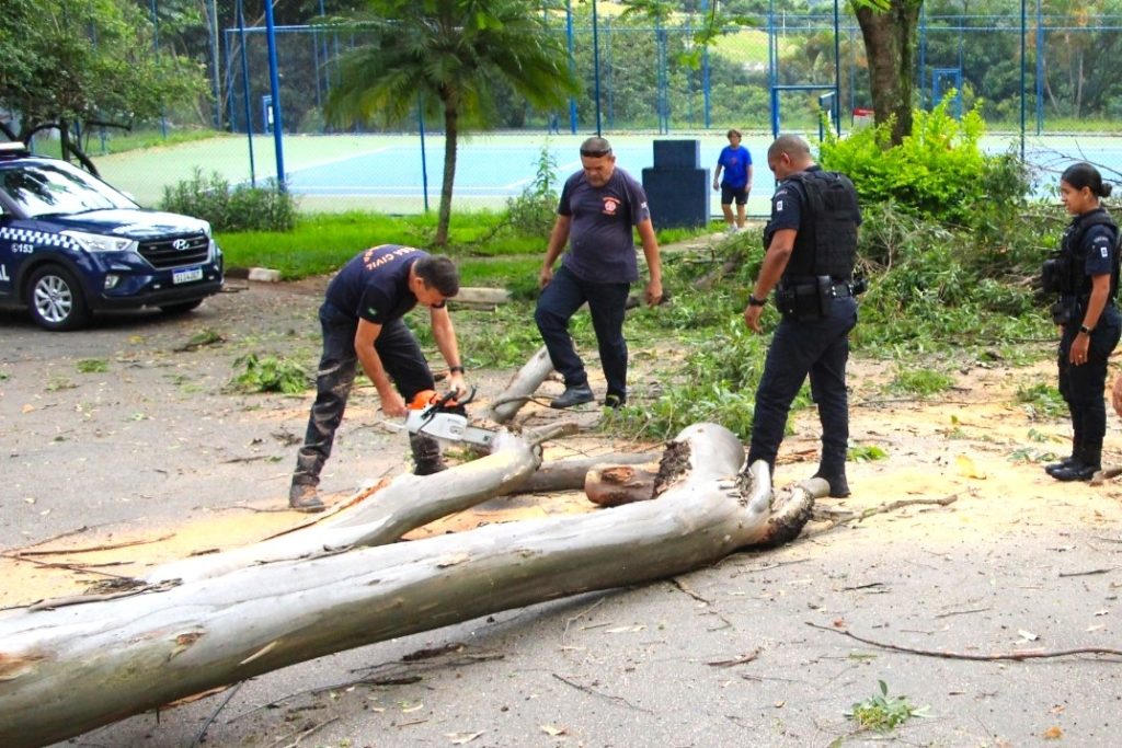 Alguns casos – de árvores de maior porte – demandaram de mais trabalho das equipes, como no Jardim Harmonia – uma árvore que caiu parte sobre um micro-ônibus estacionado na rua e parte sobre o portão de uma residência.