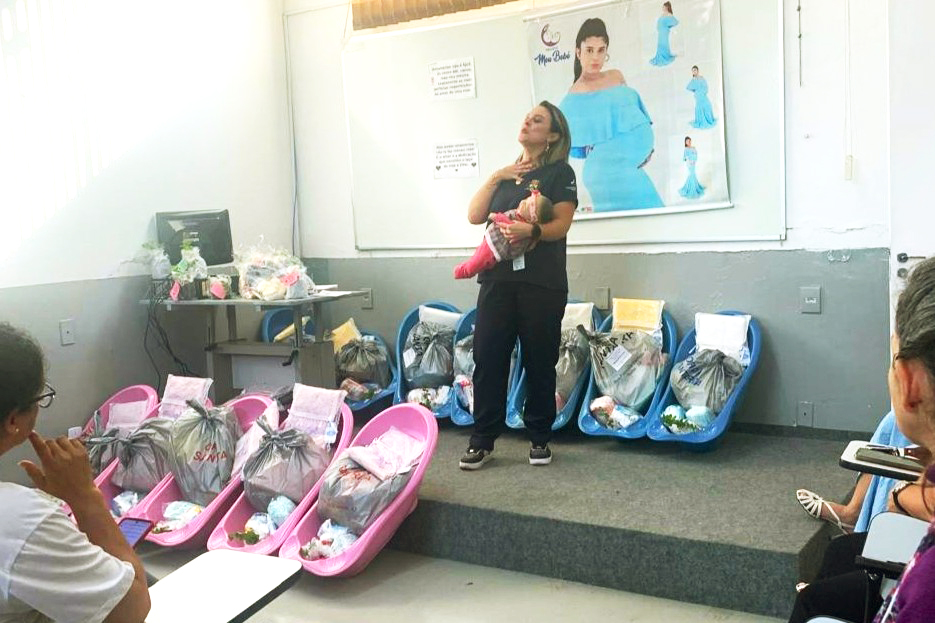 Esses 17 enxovais somam-se às 176 entregas desde o início do ano (entre janeiro e julho). As gestantes presentes na cerimônia acompanharam palestra sobre amamentação e prevenção do engasgo com a enfermeira Karen Silva.