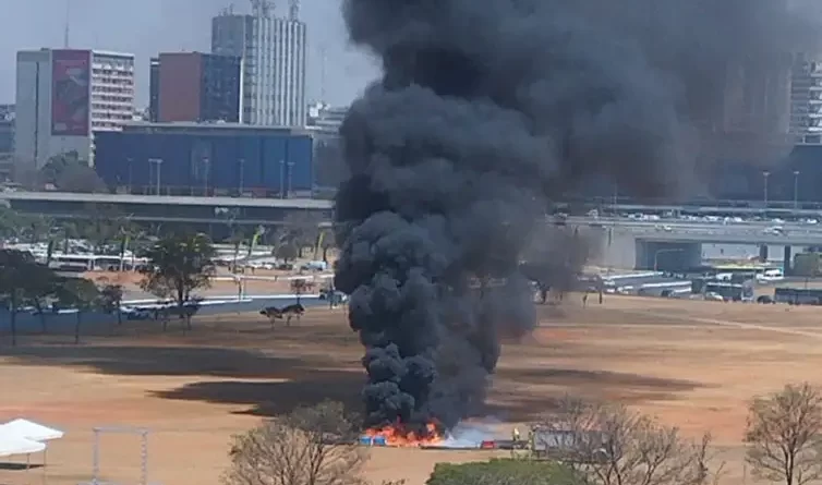 Dez banheiros químicos foram incendiados no gramado da Esplanada dos Ministérios no final da manhã desta terça-feira (9). O Corpo de Bombeiros do Distrito Federal controlou rapidamente as chamas, mas uma fumaça alta e escura ficou visível de vários pontos do centro da capital.