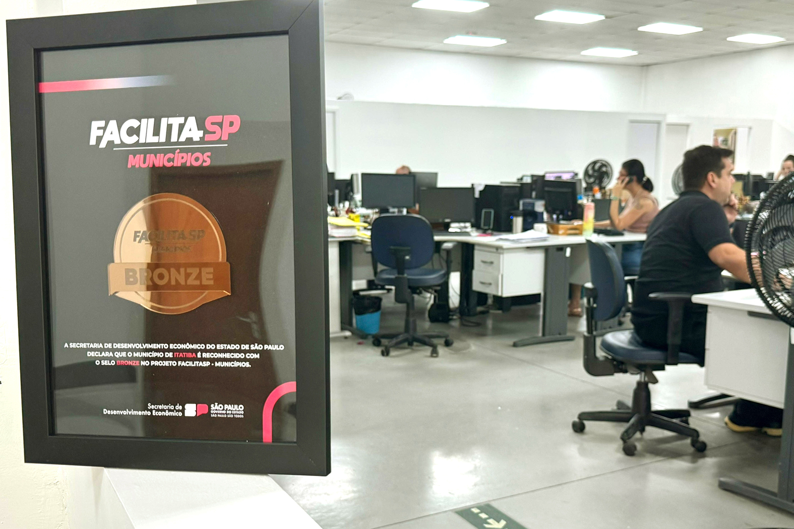 A Prefeitura de Itatiba recebeu do Governo do Estado de São Paulo na última semana reconhecimento por ser município que busca desburocratizar e melhorar o ambiente de negócios através da adesão à iniciativa Facilita SP. Itatiba foi representada em evento na capital paulista por Levi Cabral Simões, que integra o corpo técnico da Secretaria de Desenvolvimento Econômico e Habitação, comandada por Eduardo Aoun.