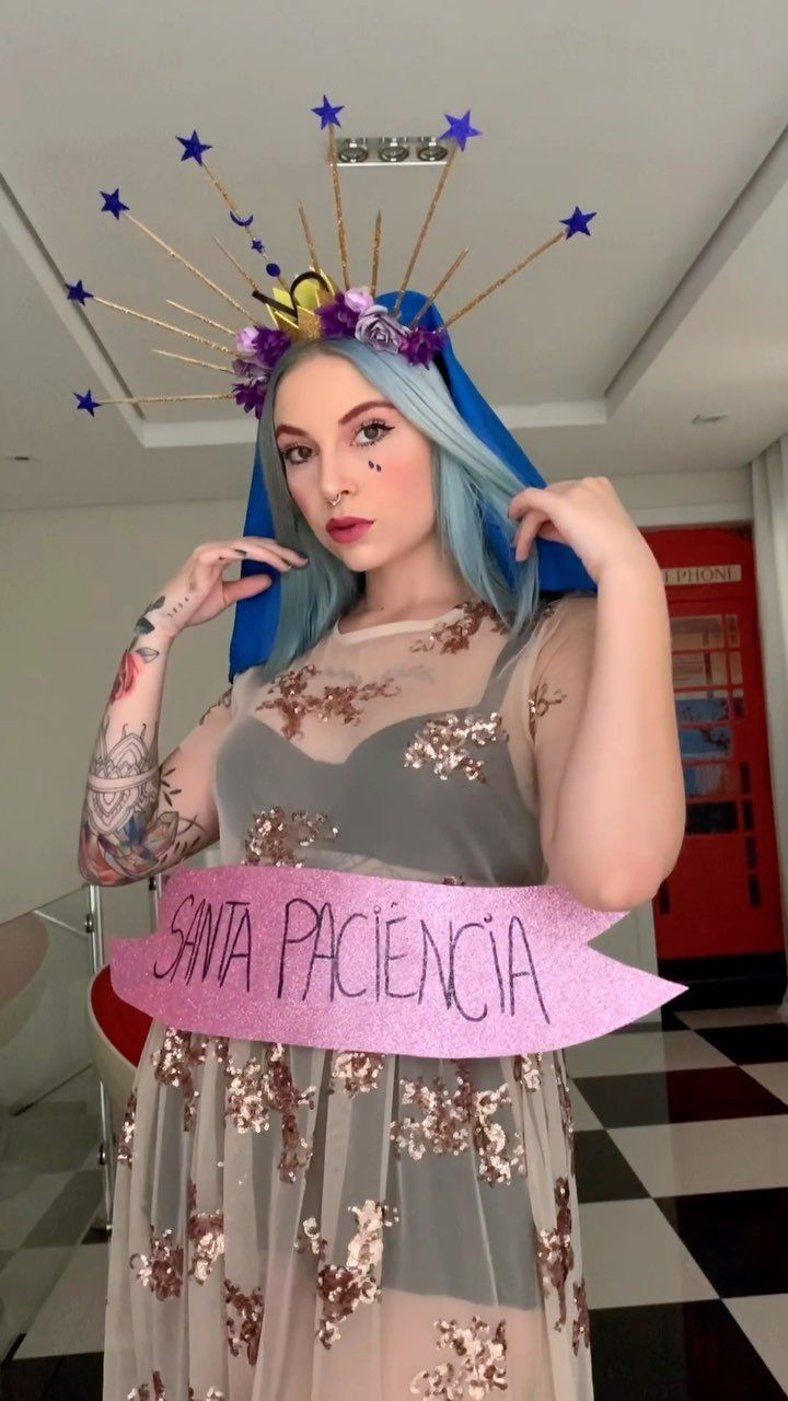 Uma fantasia que é quase um pedido silencioso ao universo. Ideal para quem vai enfrentar fila de banheiro químico, calor fora de época ou aquele atraso clássico do bloquinho. Túnica, auréola improvisada e uma expressão de quem já aceitou tudo.
