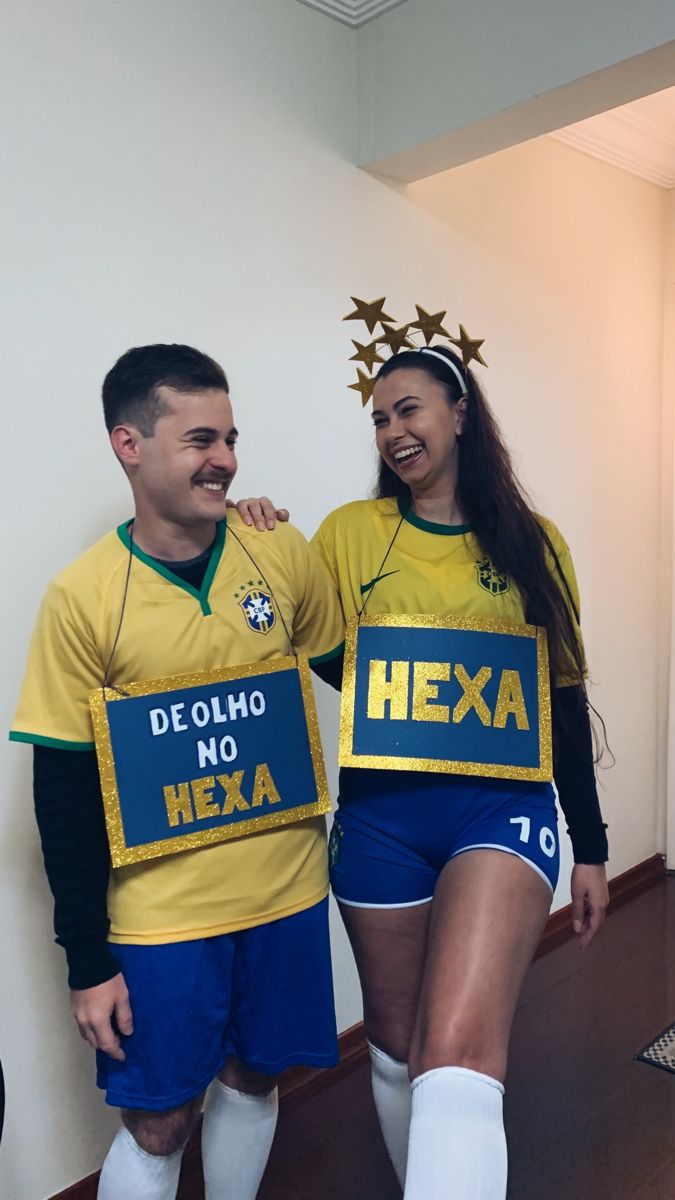 Fantasia perfeita para ir em casal. Simples, atual e cheia de bom humor, misturando futebol, expectativa e Carnaval.