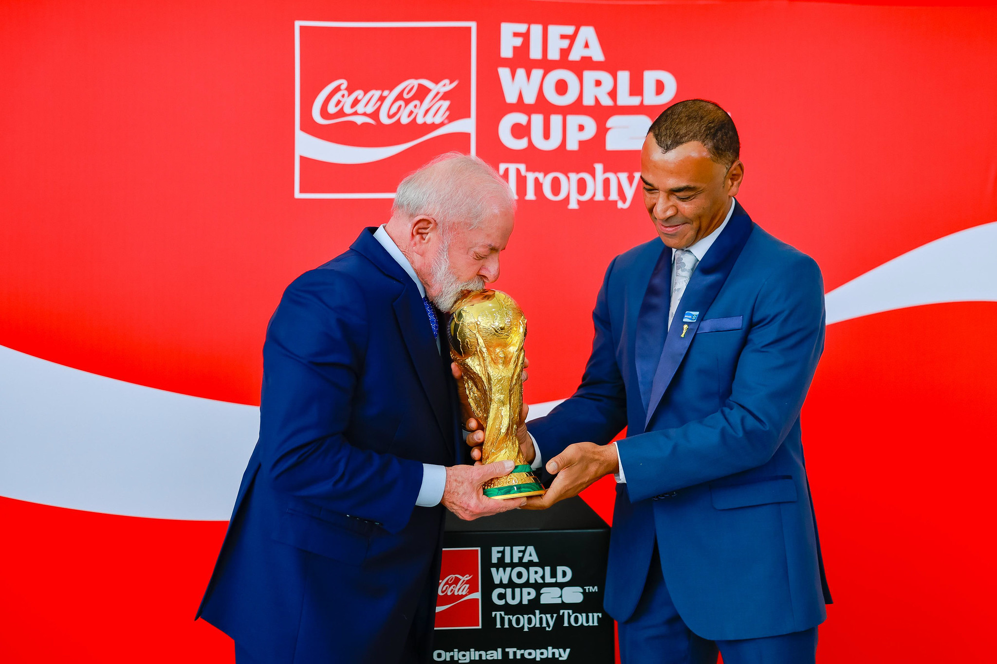 O presidente Luiz Inácio Lula participou, nesta quinta-feira (26), da cerimônia oficial Tour da Taça da Copa do Mundo da Fifa 2026, no Palácio do Planalto. Ex-jogadores de futebol, como Cafu, Jairzinho, Branco, Edmílson, Pepe e a ex-atleta Formiga, da Seleção Feminina, também estiveram presentes no evento, além de ministros e outras autoridades.