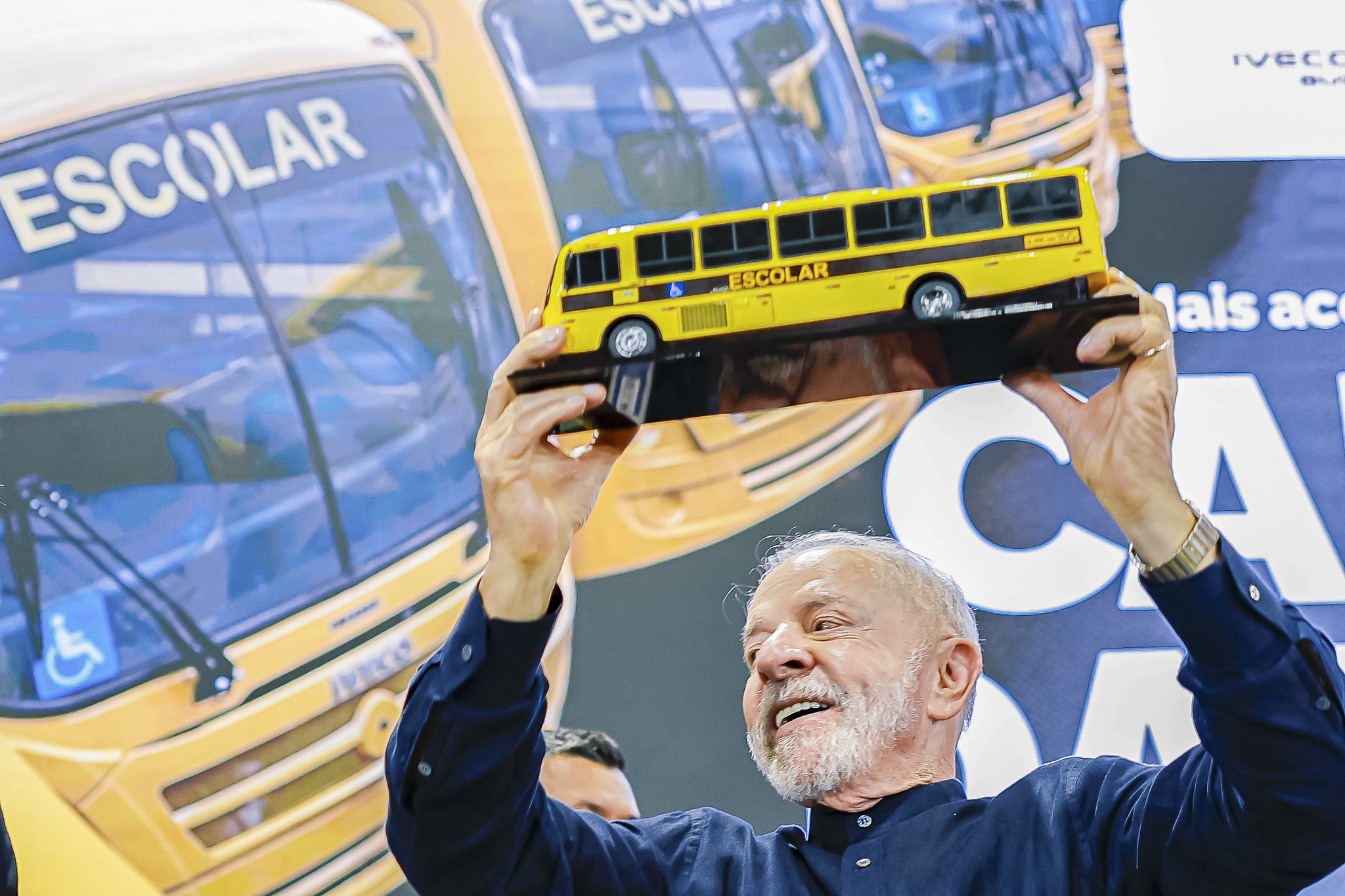 Ele participou, em Sete Lagoas (MG), da entrega simbólica de 324 novos ônibus escolares do Programa Caminho da Escola. Os novos veículos vão atender estudantes da educação básica que vivem em áreas rurais, ribeirinhas e de difícil acesso no país.