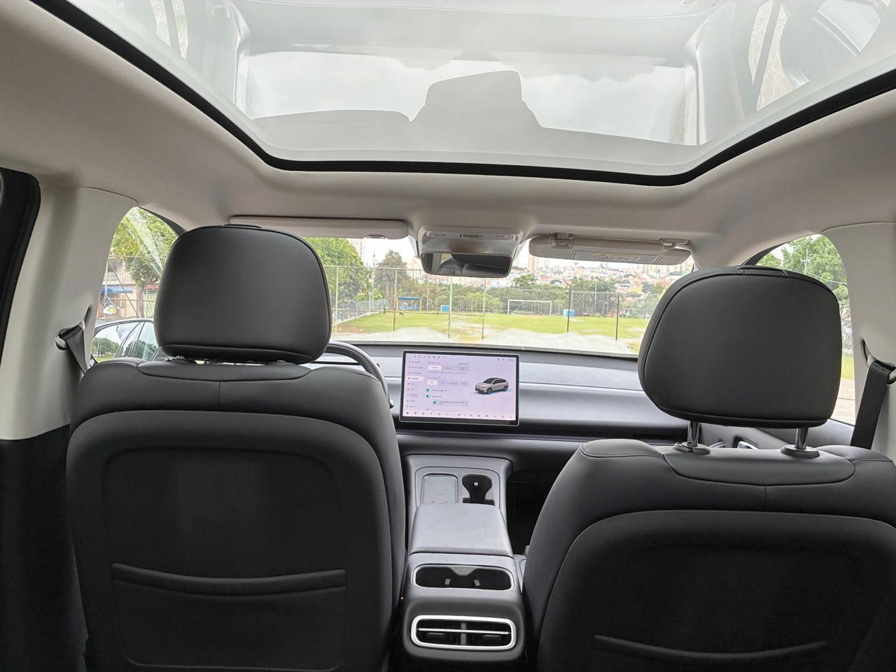 O acesso já mostra isso. Não há chave tradicional. O motorista pode entrar utilizando um cartão e controlar diversas funções diretamente pelo celular. Atualizações de software acontecem de forma remota, e o carro evolui com o tempo, algo que ainda é novidade para boa parte do mercado brasileiro.
